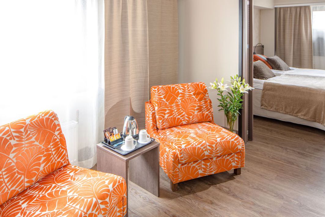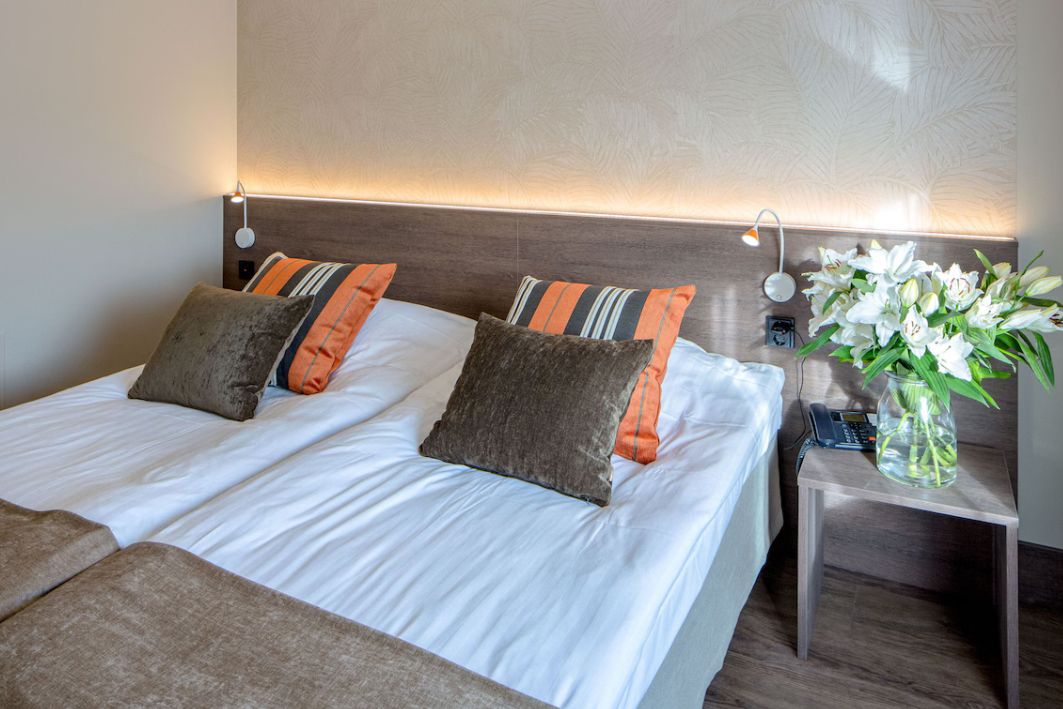 Kiekviename viešbučio kambaryje veikia nemokamas belaidis internetas, yra televizorius, šaldytuvas ir el. virdulys bei privatus vonios kambarys su plaukų džiovintuvu bei nemokamais higienos reikmenimis.